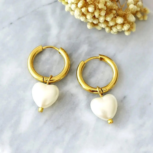 Creolen mit Herzanhänger in Perlmuttoptik